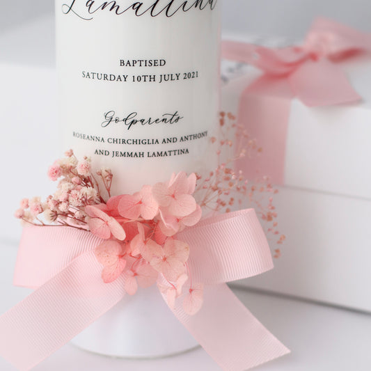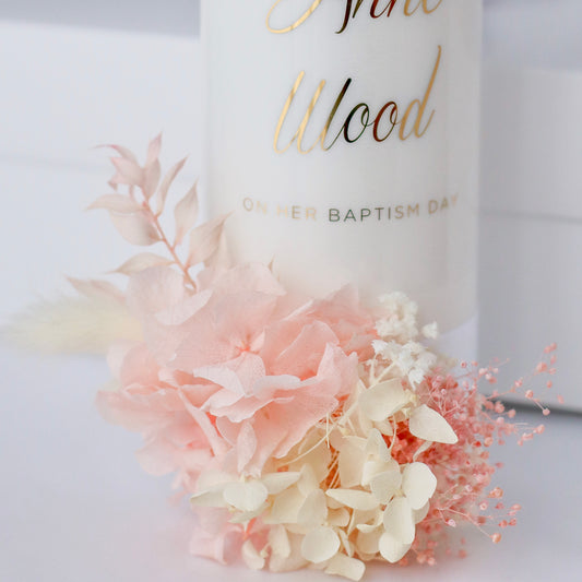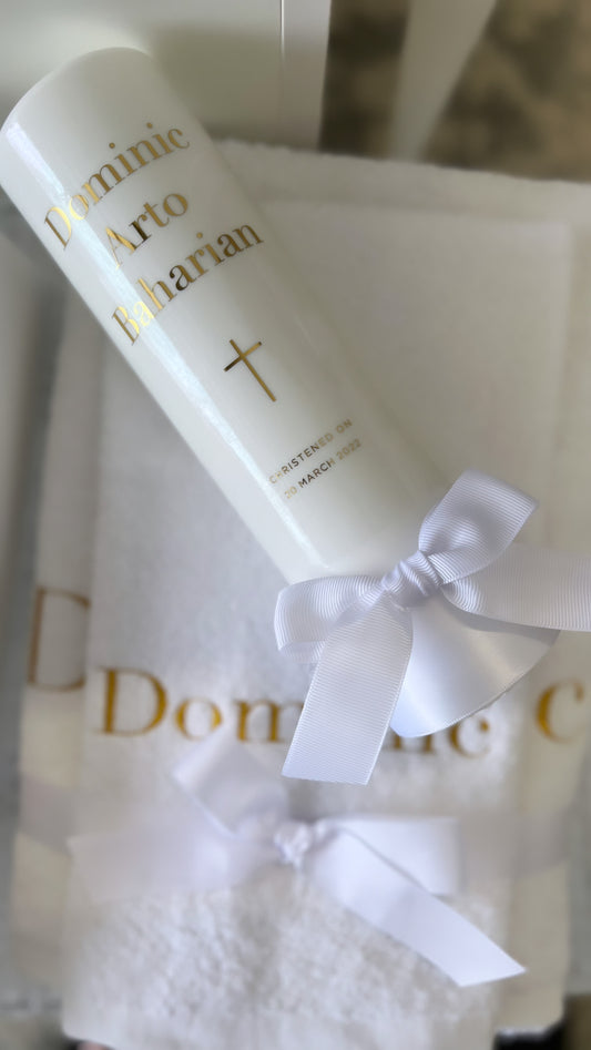 Ribbed Baptism Candle w/ Acrylic Plaque